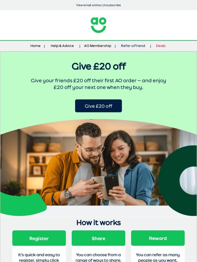 Give ยฃ20 off to your friends