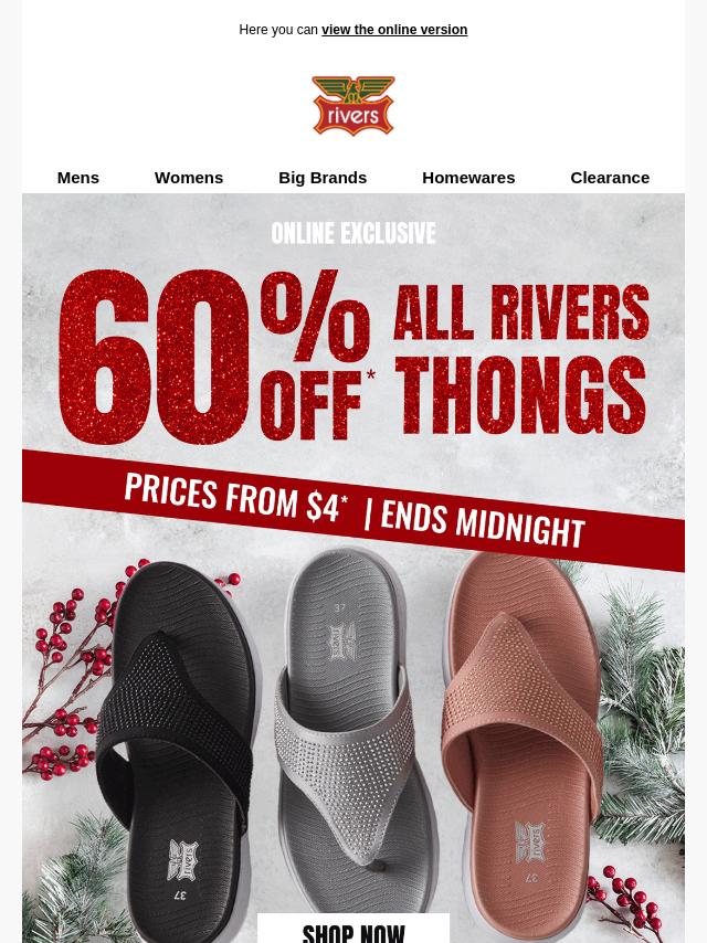 60%* OFF All Rivers Thongs!