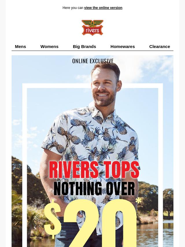 Rivers Tops Nothing Over $20* Online!