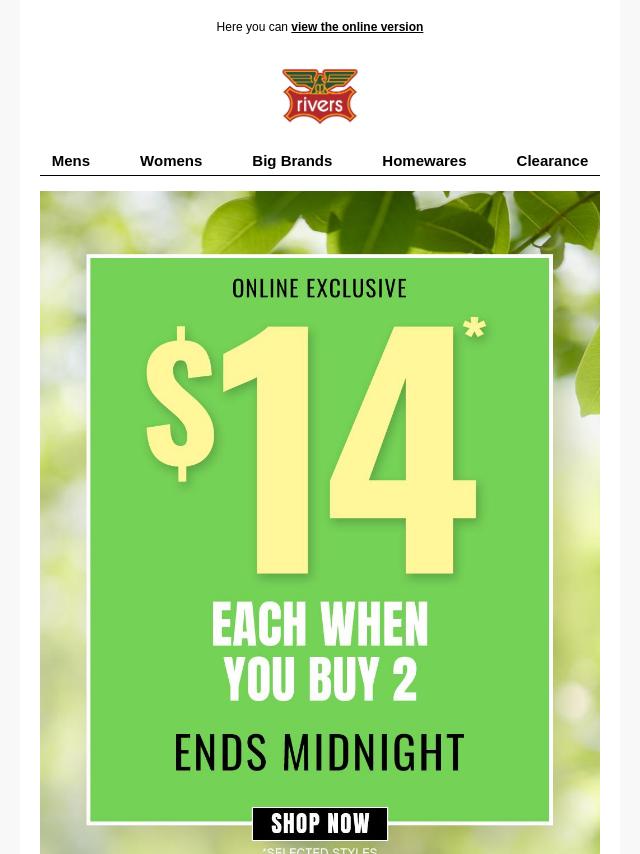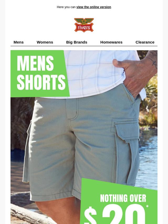Rivers Mens Shorts Nothing Over $20*!