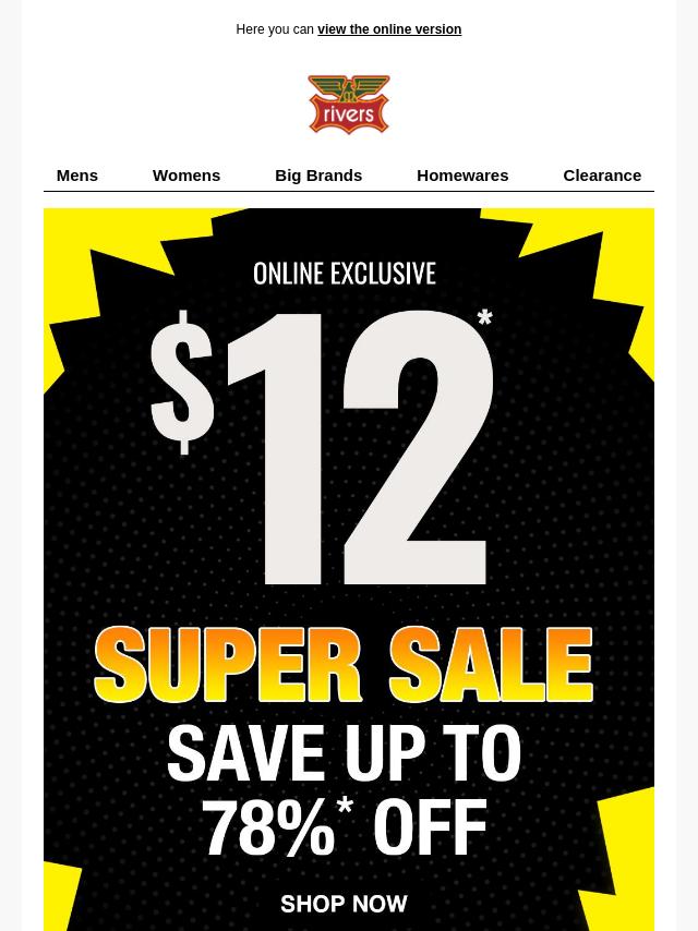 $12* SUPER SALE Online!