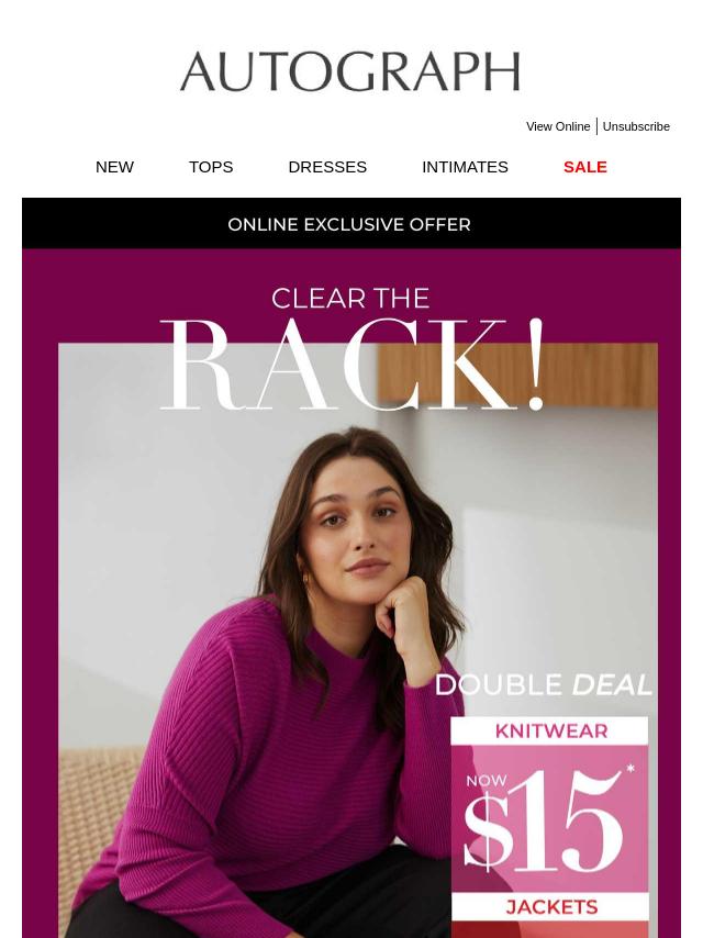 Clear the RACK! $15* Knitwear + $19* Jac...