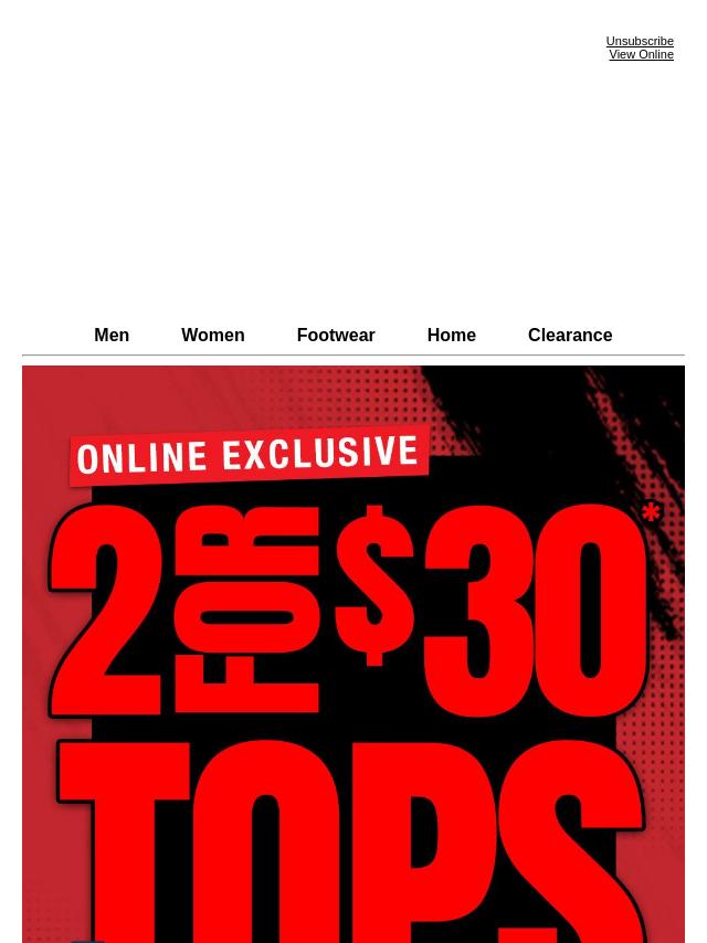 2 For $30* Tops Ends MIDNIGHT
