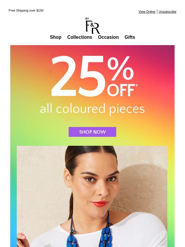 25%* OFF All Coloured Pieces