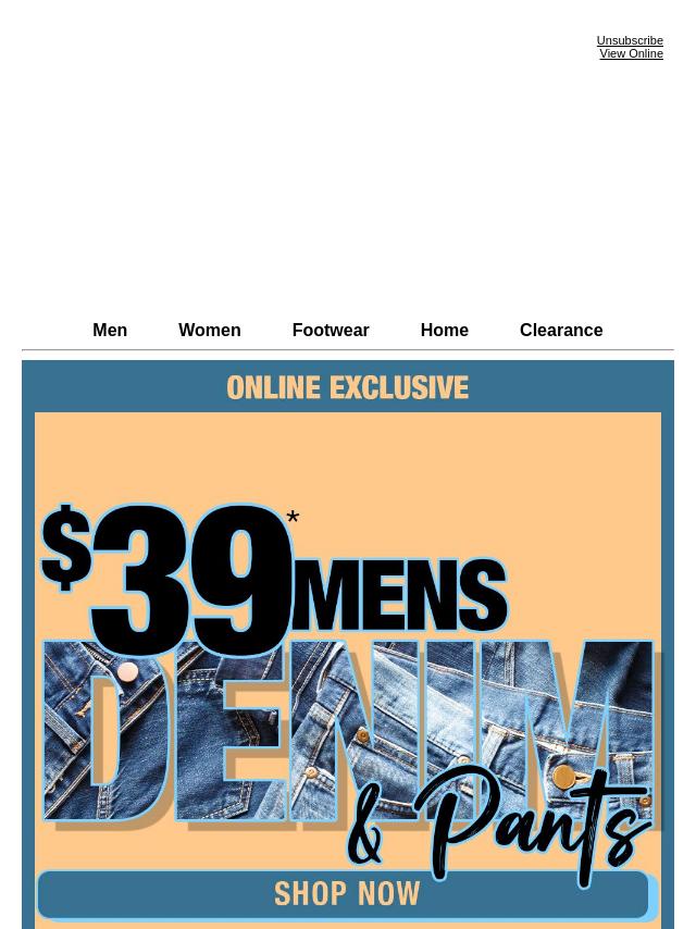 Mens Denim & Pants Now $39* Online