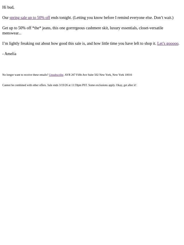 bye! up to 50% off ends tonight