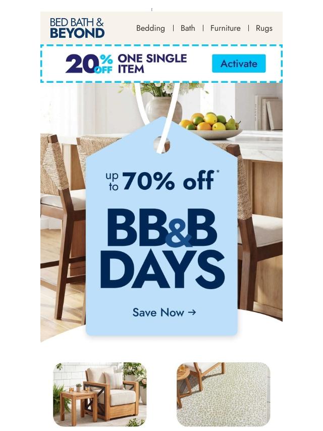 BB&B Days are back: Up to 70% off