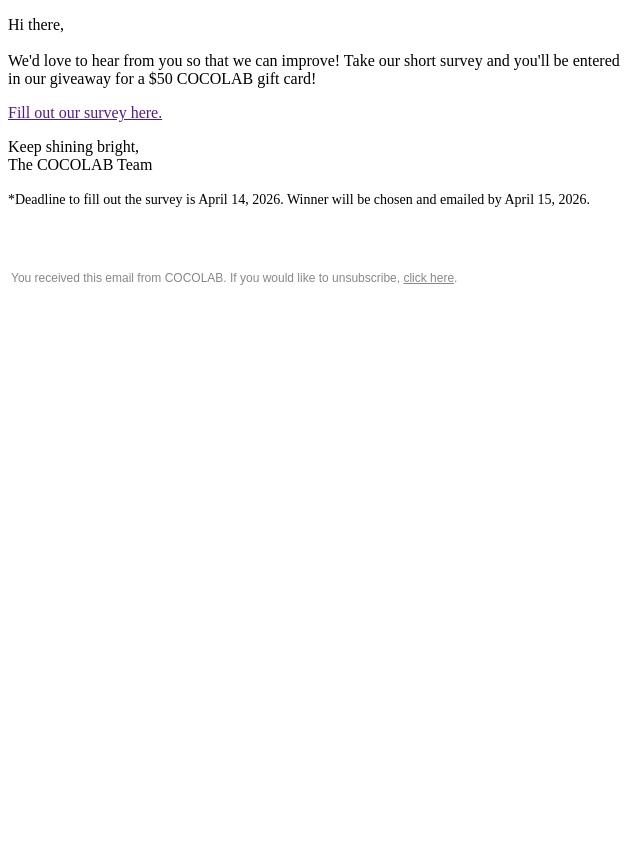 Win a $50 COCOLAB Gift Card by taking ou...