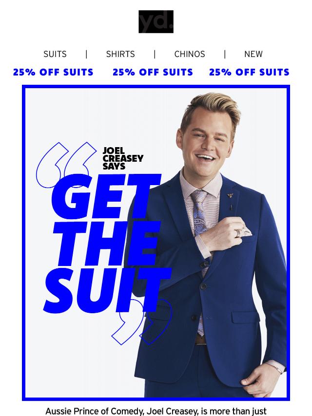 Joel Creasey says “Get the Suit”