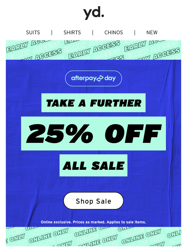 Afterpay Day Sale! Extra 25% Off on Sale...