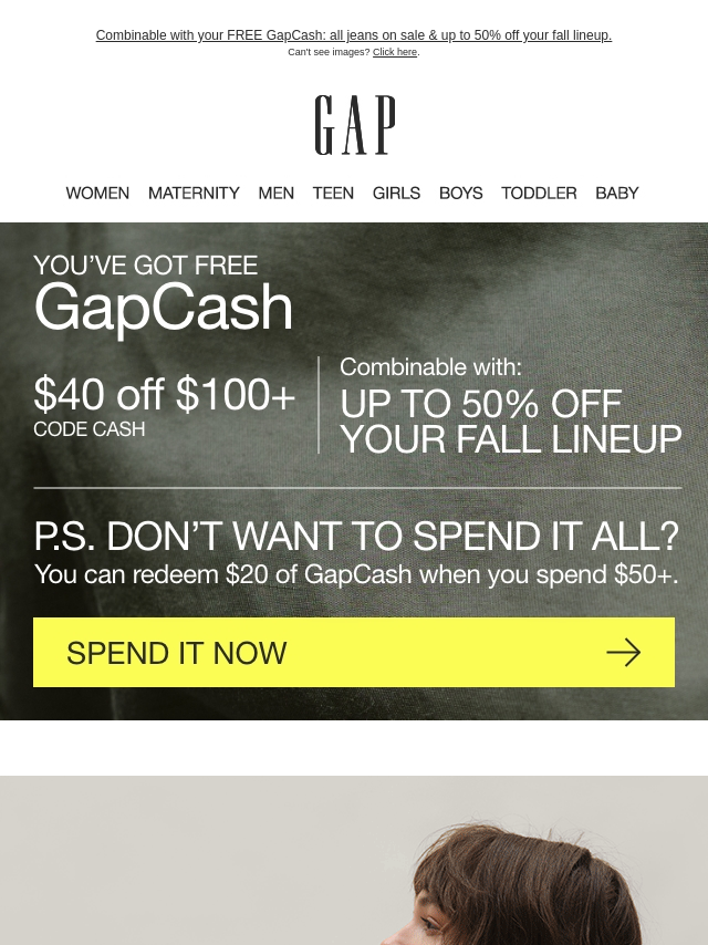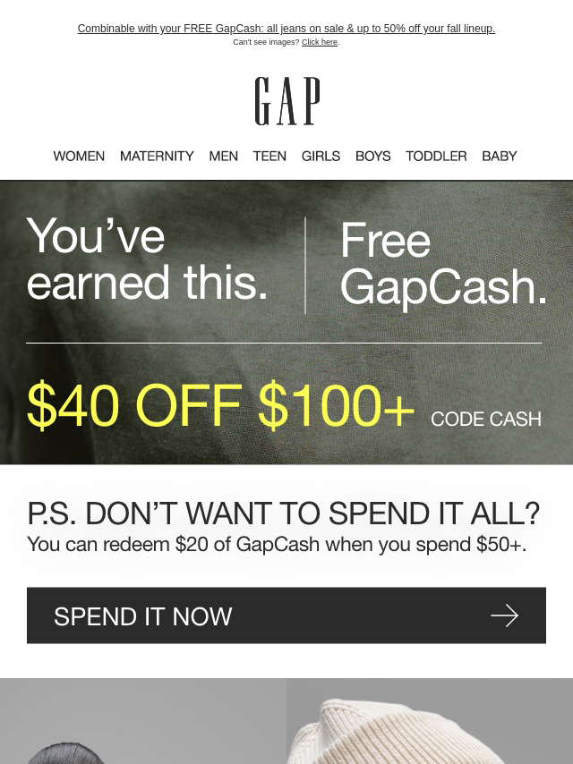 Use your $40 GAPCASH on everything . . ....