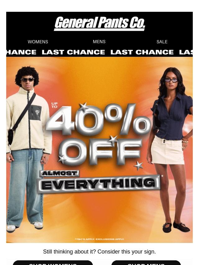 UP TO 40% OFF ALMOST EVERYTHING ENDS SOO...