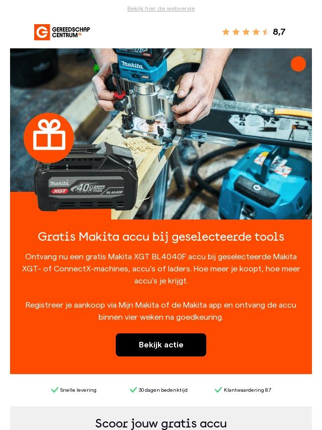 Scoor een gratis Makita XGT accu bij ges...