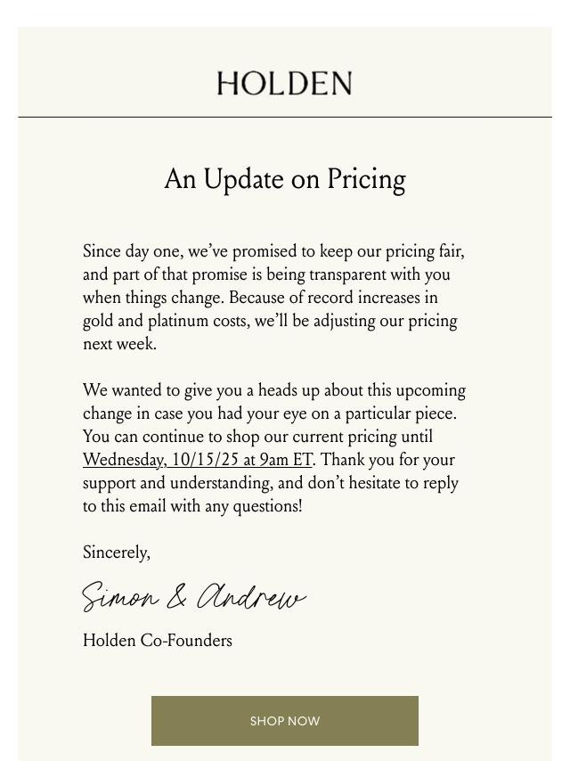 a pricing update