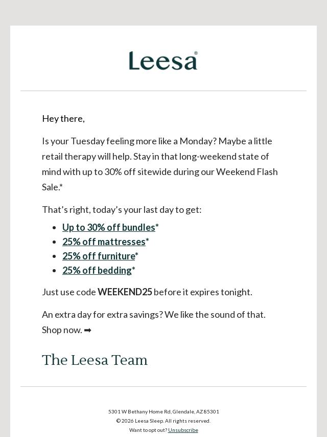 Emails from leesa.com: