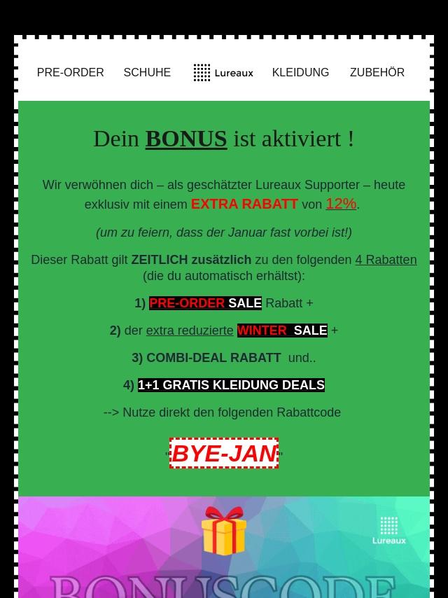 ๐ Dein Code โBYE-JANโ ist aktivie...