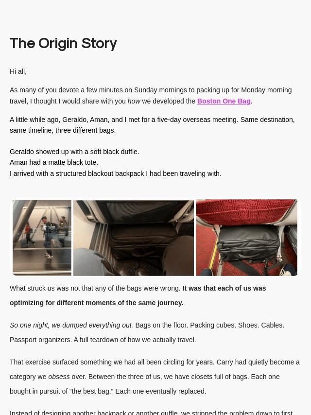 Boston One Bag: Unpacked