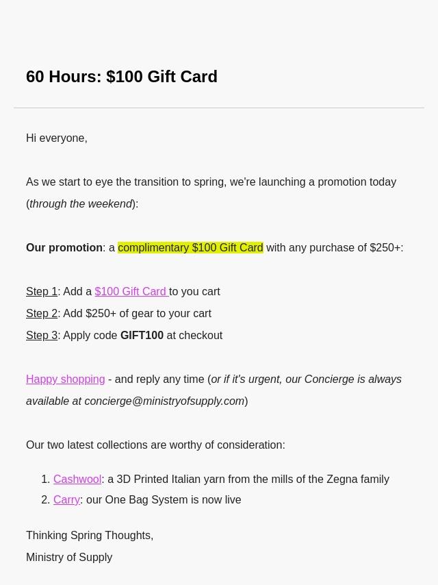 60 HOURS for $100 Gift Cards