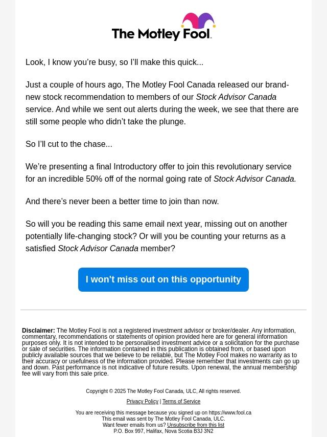 Emails from Motley Fool Canada (CA):