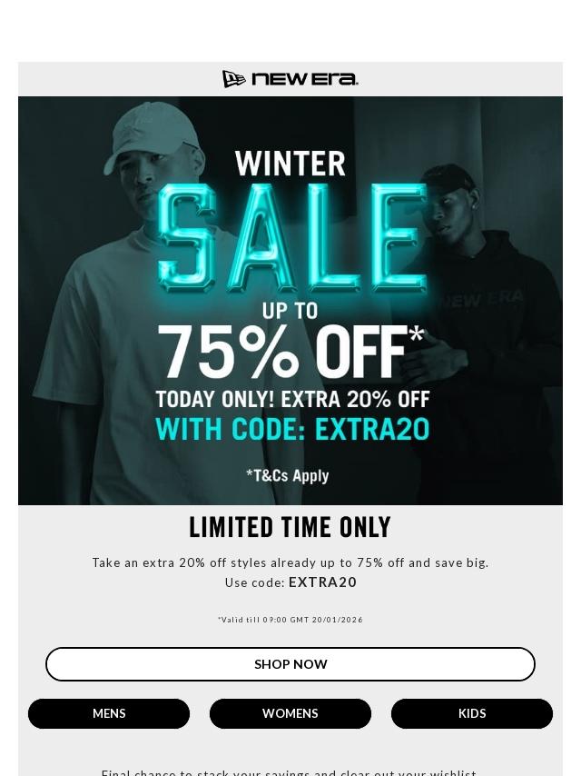 Up to 75% + 20% Off* - 24 Hours Only