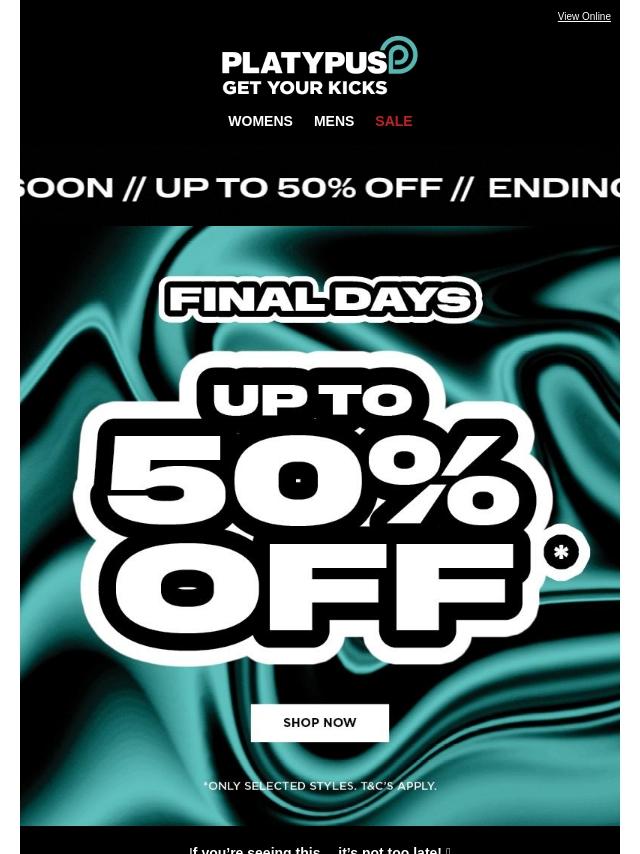 Emails from Platypus Shoes: