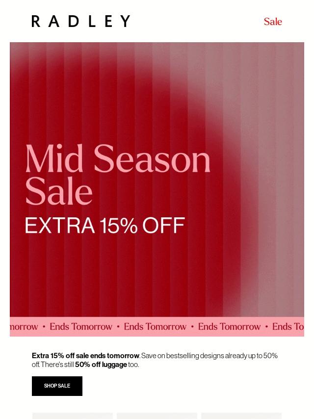 Extra 15% off sale ends tomorrow