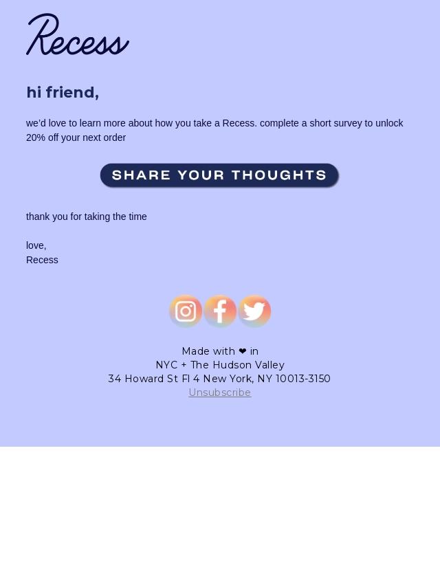 take our survey – unlock 20%