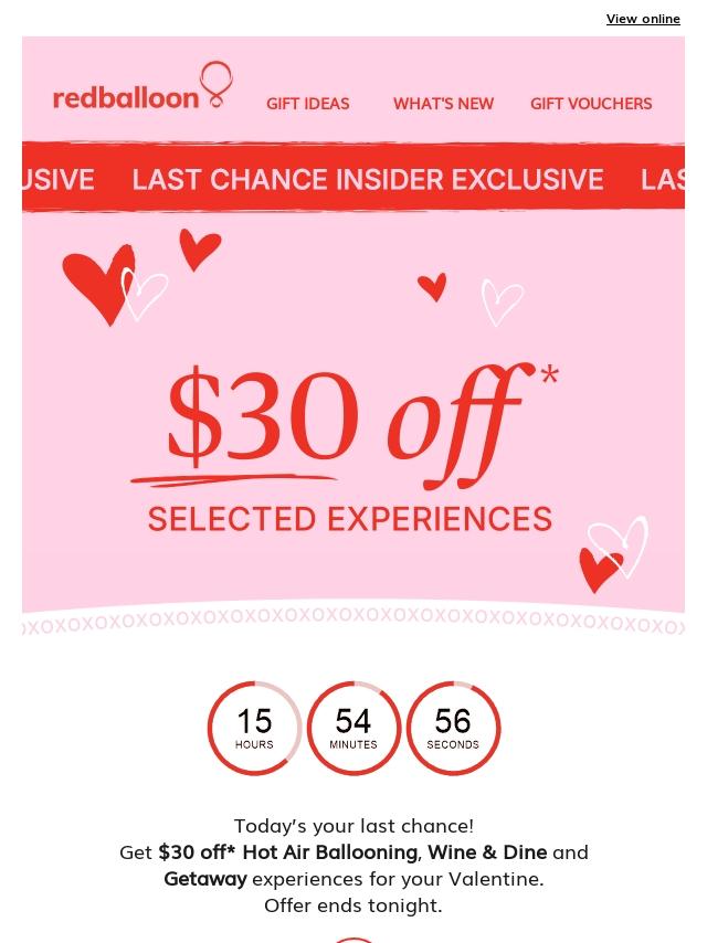 Thanks for being a RedBalloon VIP member...