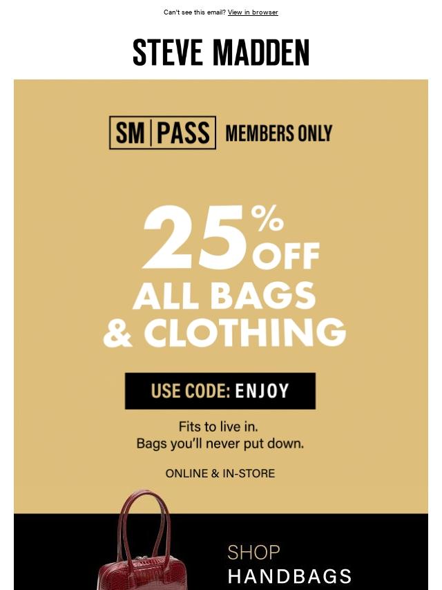 VIP Special: 25% Off ALL Bags & Clothing