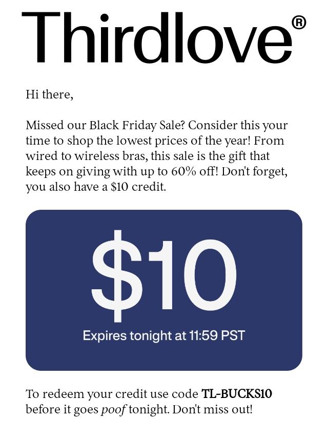 Your $10 expires tonight