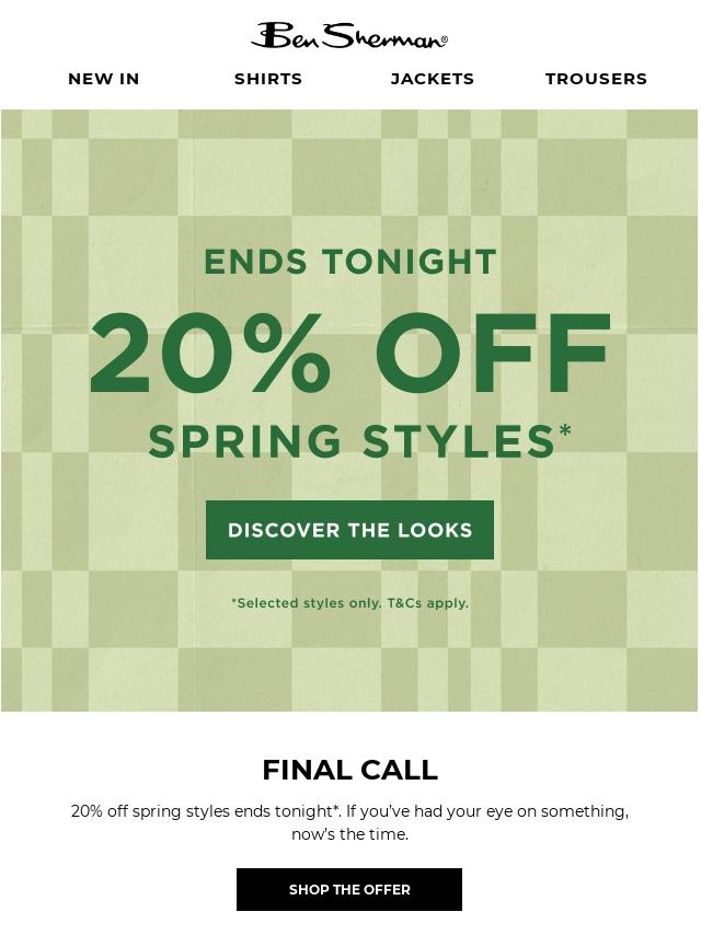 ENDS TONIGHT: 20% OFF SPRING STYLES*