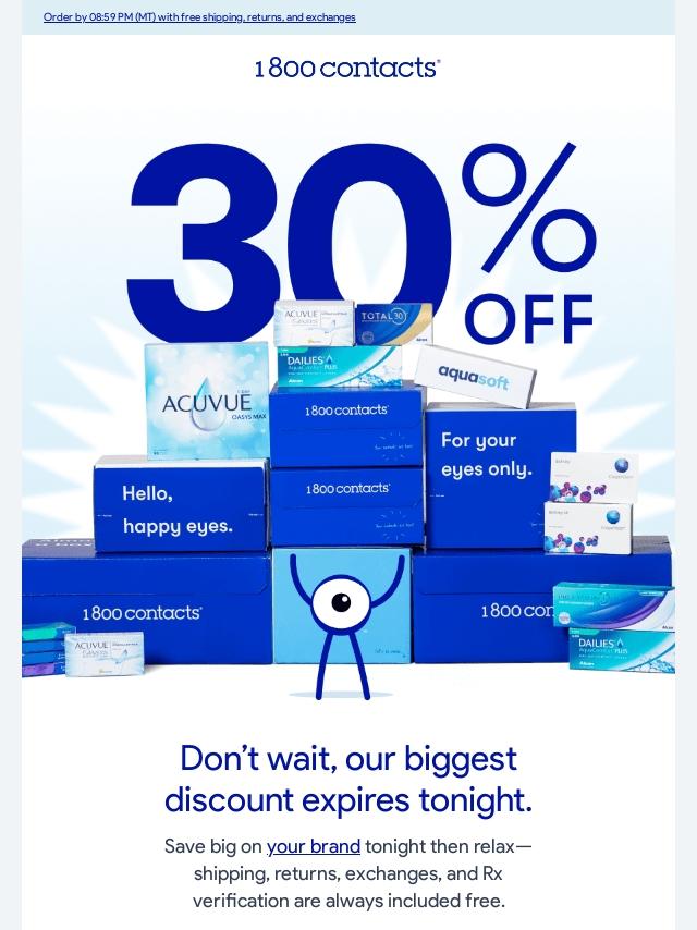 Hurry, this 30% offer on contacts ends tonight.