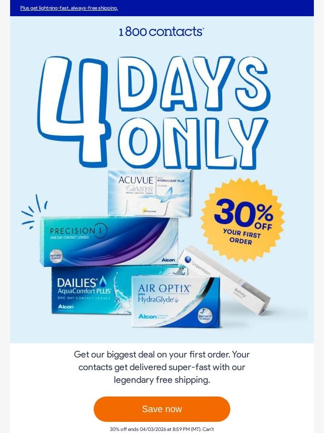 Hurry, this 30% offer on contacts ends t...