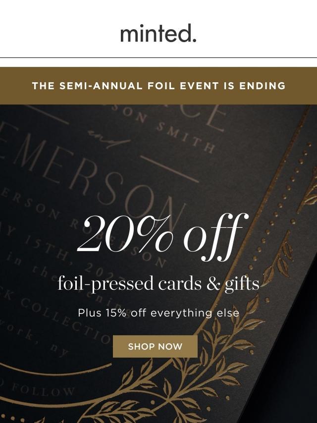 Last chance: 20% off foil cards & gifts