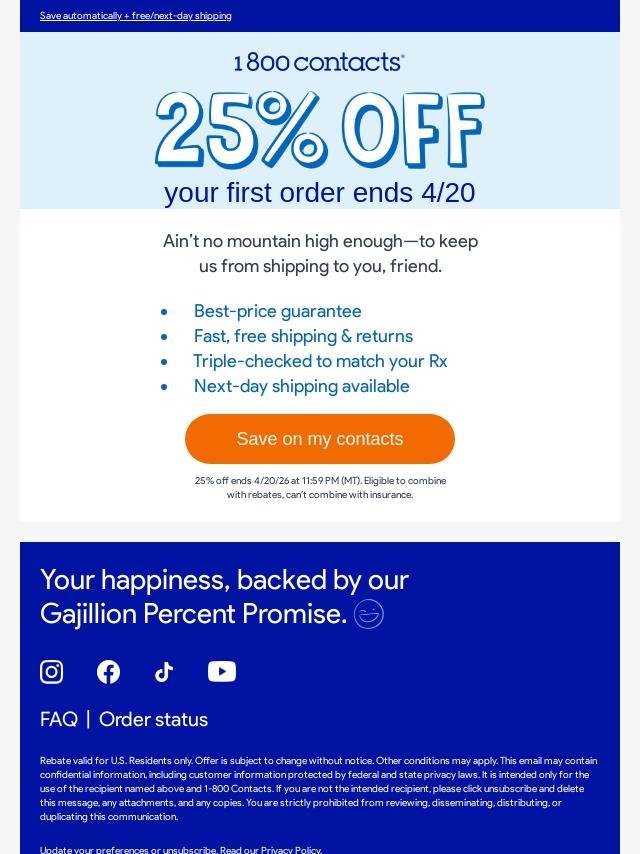 Friend, 25% off contacts ends soon