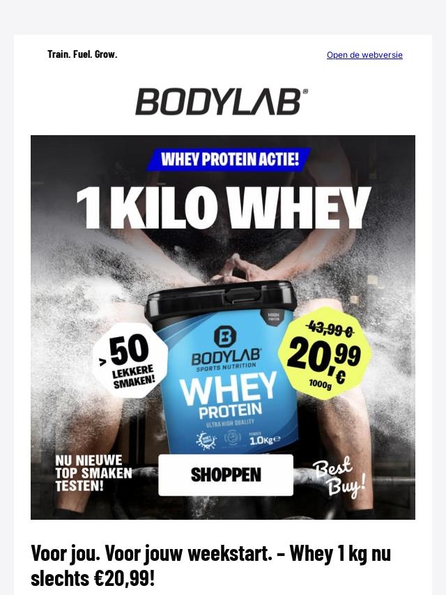 💪 Whey 1 kg nu slechts €20,99!