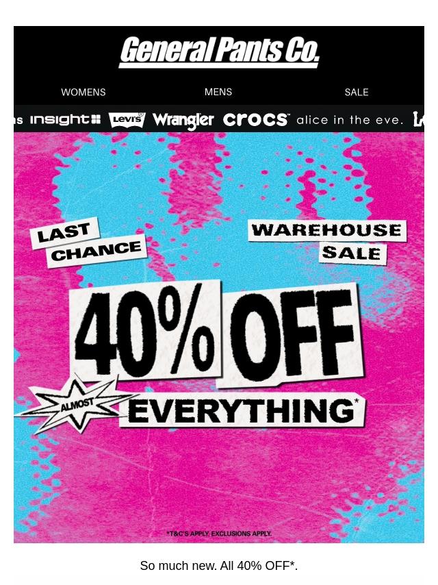 EXTENDED: 40%-50% OFF* WAREHOUSE SALE