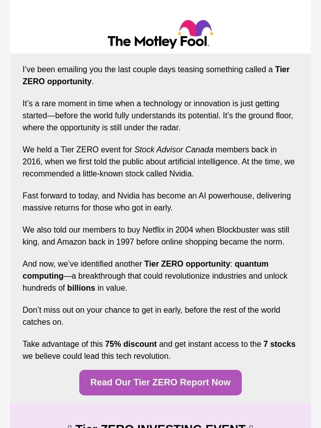 Let’s talk about our Tier ZERO Investi...