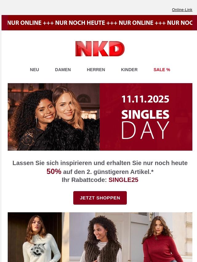 Singles Day! 50% Rabatt - jetzt online s...
