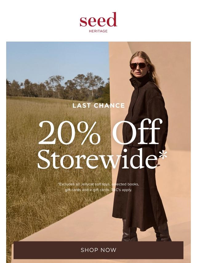 LAST CHANCE: 20% Off Storewide