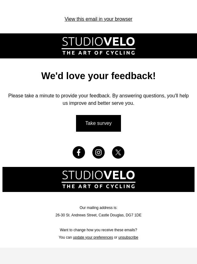 Emails from Studio Velo:
