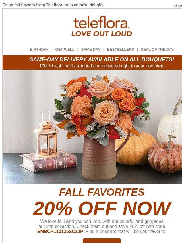 Enjoy 20% off Fresh Autumn Blooms ๐